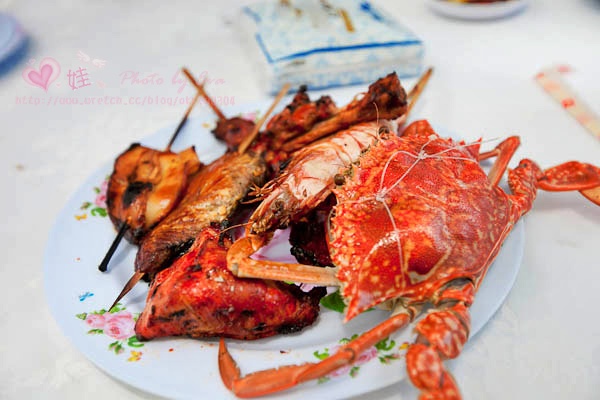 魷魚、雞肉、鮮魚、大蝦、花蟹、串燒